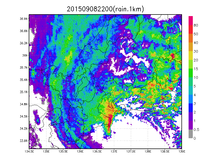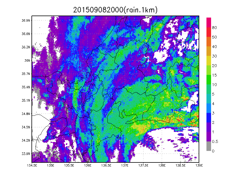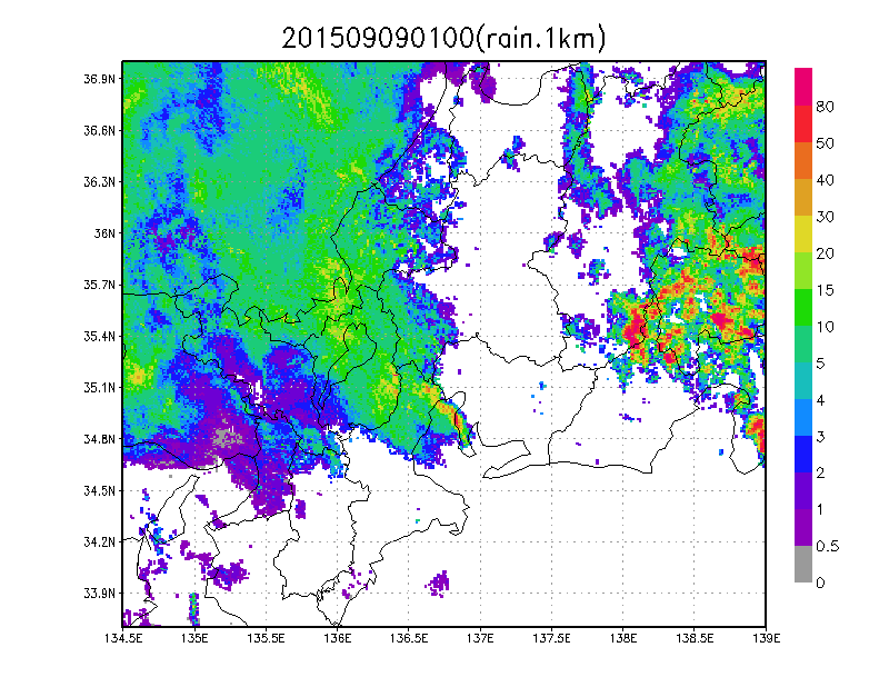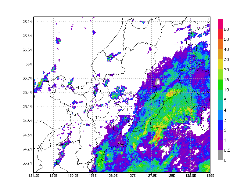 Figure 8: JMA Radar Echo (mm/h) for September 9th, 0500-1000JST.